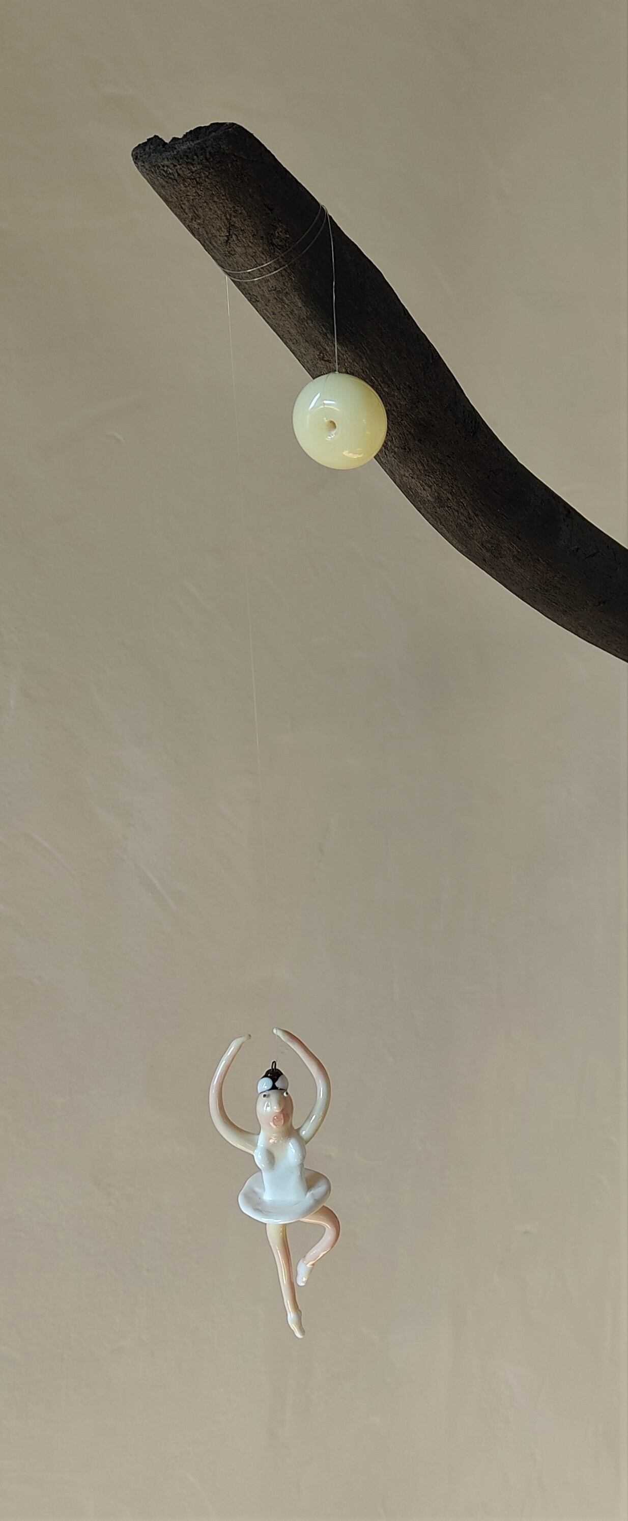 とんぼ玉のおもりが端についており、棒などに巻き付けていただく仕様になっております。
