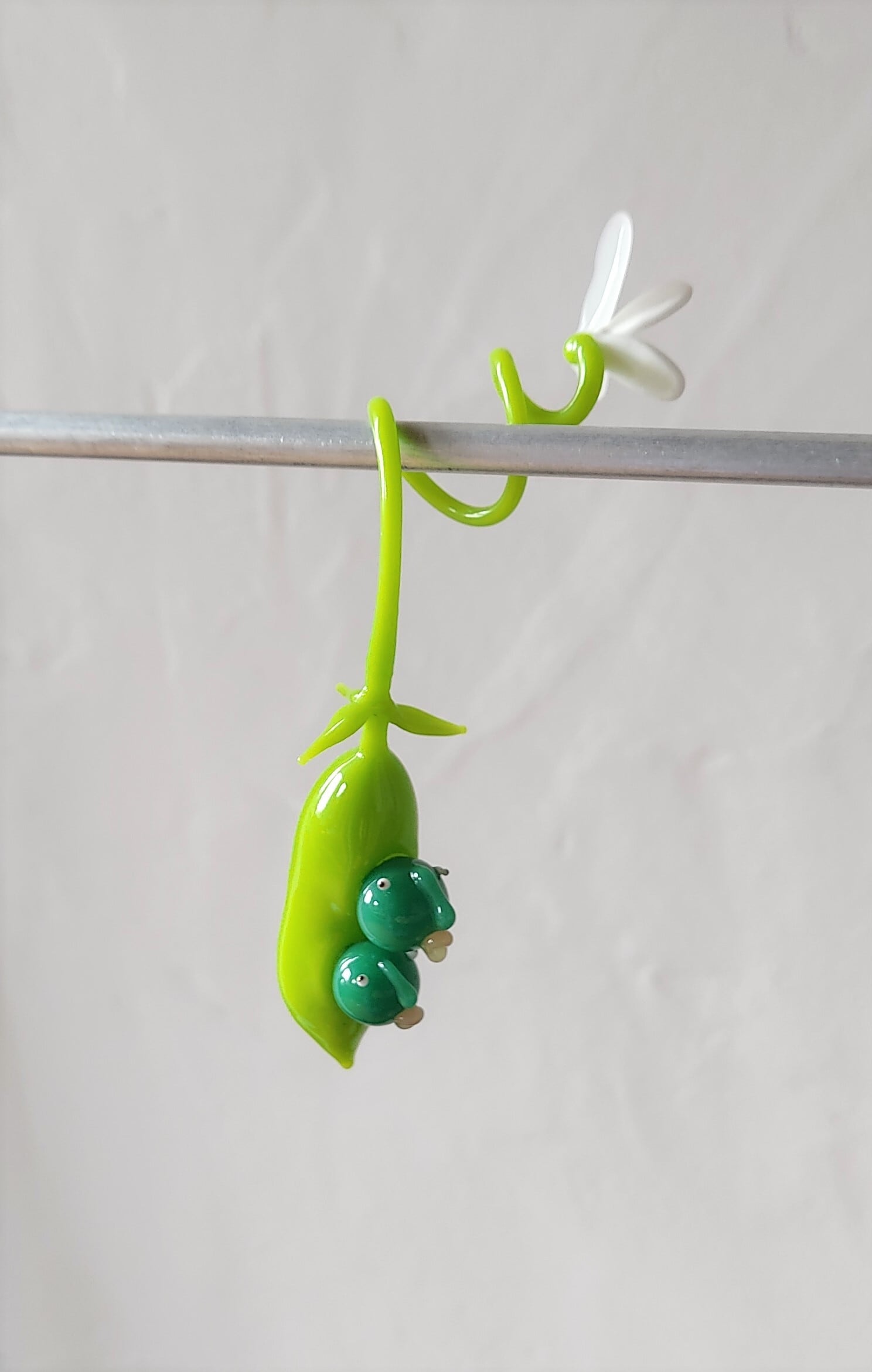 ガラス棒をバーナーで溶かして成形する、バーナーワークという技法で制作したガラス細工です。